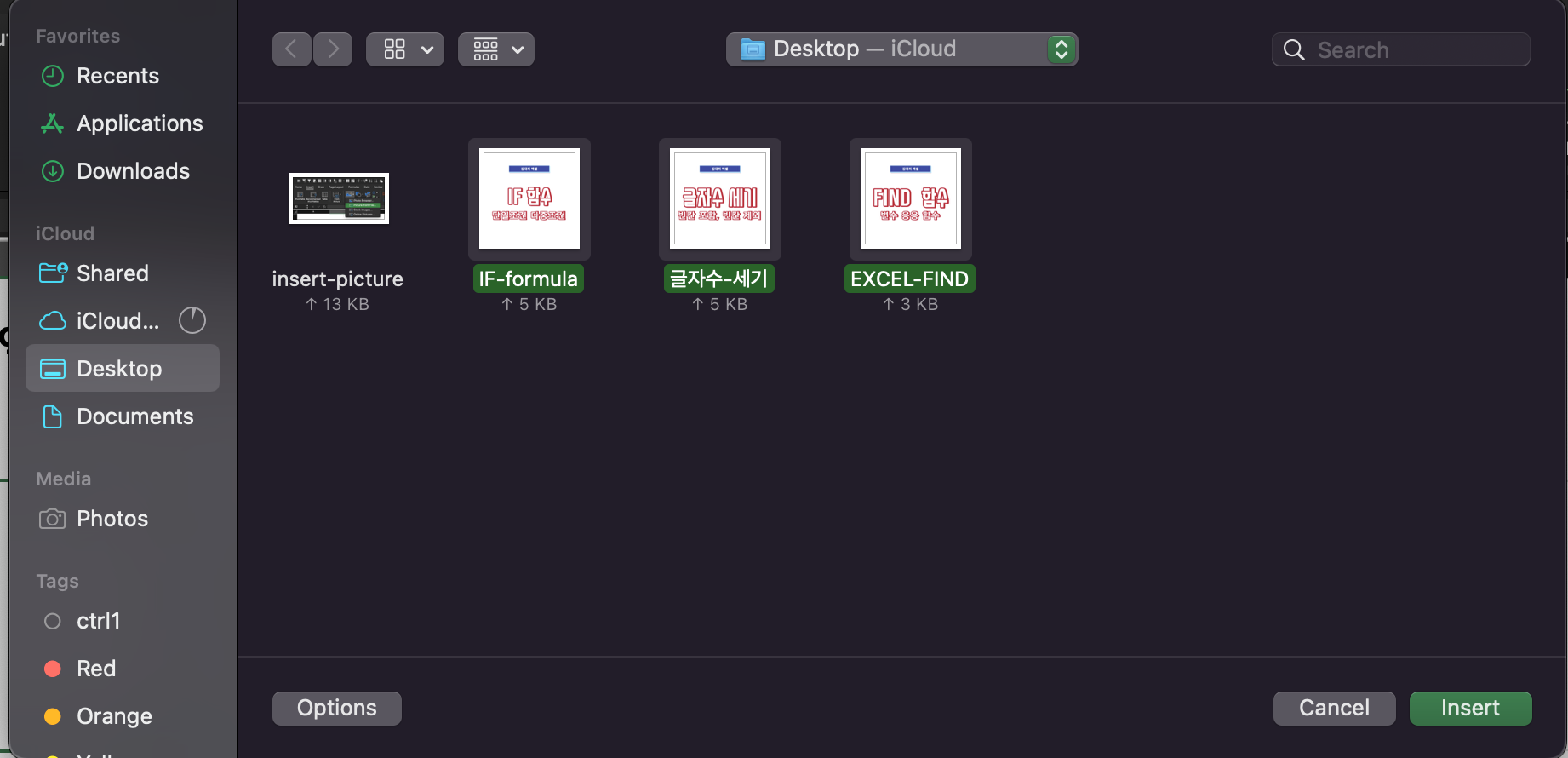 맥북 엑셀 365를 기준으로 이미지 셀 안에 넣기를 설명드리도록 하겠습니다.